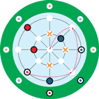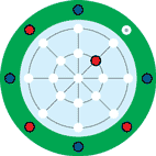 on the corresponding spaces on the green ring (blue on blue marks, red