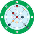 coloured spot is facing uppermost. Thus filled with energy, the player